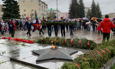 Военнослужащие возлагают к Вечному огню Гирлянду славы, руководители города и района, предприятий и организаций – венки. Склонив головы, множество алых гвоздик возложили к мемориалу кольчугинцы и гости нашего города: сколько бы ни минуло лет с того памятного победного дня – мы помним! Никто не забыт и ничто не забыто. В тот же день состоялось возложение венков к памятнику погибшим воинам на мемориальном кладбище